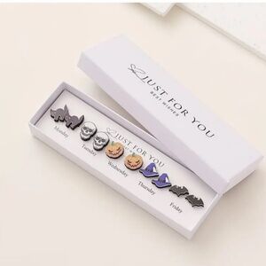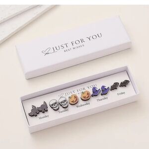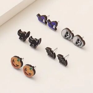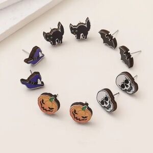 NWT! Set of 5 Pairs of Halloween Holiday Wood Pierced Post Earrings in Gift Box!