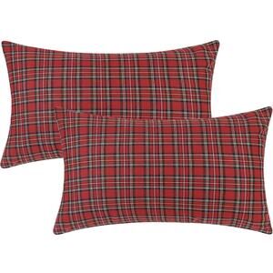 NWT Set of Two 12x20” Red Plaid Pillow Covers