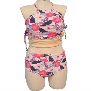 NWT Set Tankini & Midrise Bikini Swimsuit Set Full Coverage in Pink/Blue F…