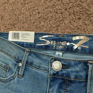 Elevate your denim game with these stylish Seven7 cropped jeans in a medium blue wash. These jeans have a high-rise waist, straight fit, and a crop length that's perfect for your everyday look. They're made of a cotton blend fabric, which ensures both comfort and durability.