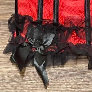 NWT Seven ‘Til Midnight Corset With Boning Red With Black Lace Detail Size Small