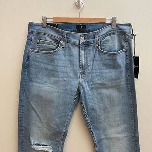 New with tags condition. Slim straight, slimmy jeans from Seven For All Mankind. Light wash with distressing. See all photos for details.