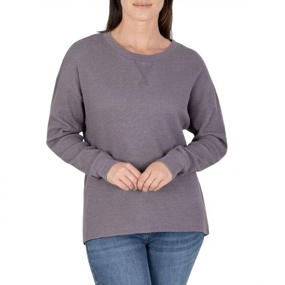 NWT Seven7 High-Low Hem Super Soft Waffle Knit Crew Pullover Top 7M70063 M Gray