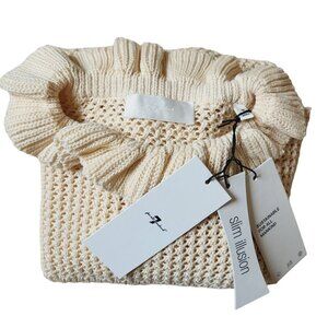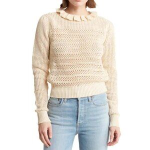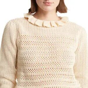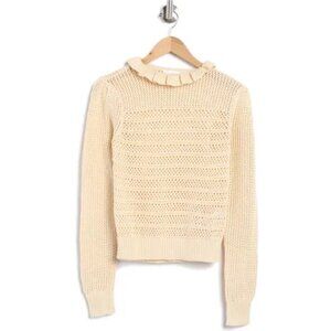 NWT Seven Ruffle Openwork Ruffle Collar Cream Oatmeal Pullover Sweater Sz. M