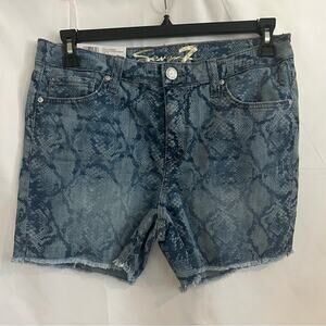 NWT Seven7 Weekend Denim Shorts Indigo Blue Python Print Fray Hem Size 10