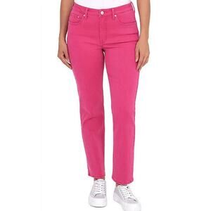 Add a fun and vibrant pop of color to your wardrobe with these slim straight jeans from Seven7! This stylish pair features a trendy high-rise waist and a flattering modern straight leg that is fitted through the hips. Crafted from comfortable stretch denim, these bright pink jeans are as comfortable as they are chic, perfect for making a statement in any season.