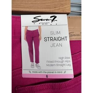 NWT Seven7 Women's 6 Slim Straight Jeans High Rise Pink Stretch Ankle Casual