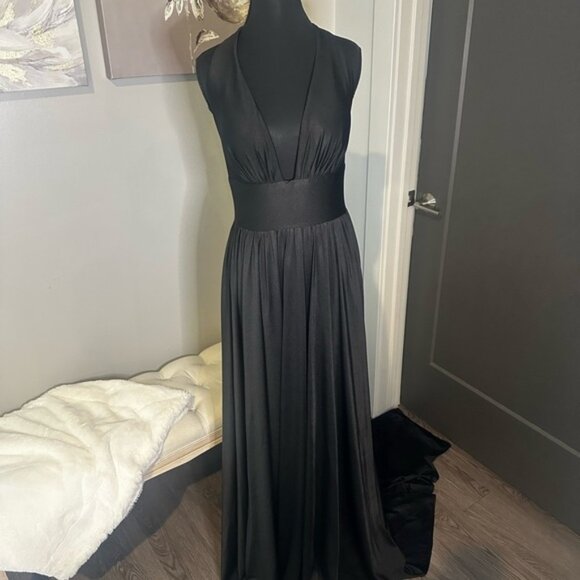 NWT Sexy Black Evening Gown with Slit Bridesmaid Dress Wedding Guest Plus Size