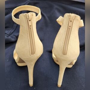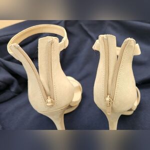 NWT Sexy Stilletto pointy toe heel scooped vamp, ankle strap, stiletto heel, stitching detail, and finished with cushioned insole for comfort. Size 9 Natural