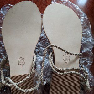 Ornate boho style sandal with braided straps. Wrap-around ankle straps with tassel detail. I'd love to keep them, but they are made for a true 7.