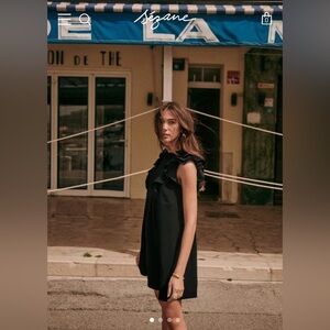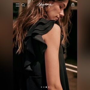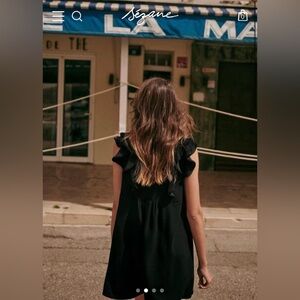 NWT Sezane Alexa in Noir Black Crepe Ruffled Mini Shift Dress LBD 44 / US 12
