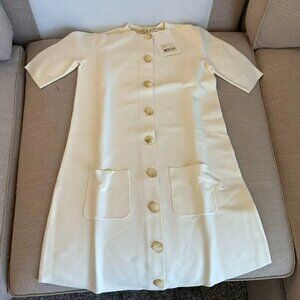 NWT Sezane Ava Mini Dress Small Ecru Ivory Cream Knit Button Front Stretch