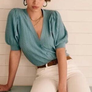 NWT Sezane Lola Jumper - Sky Blue French Cardigan Sweater Causal