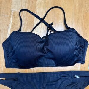 NWT Shade & Shore Black Bikini Swimwear Set 34D