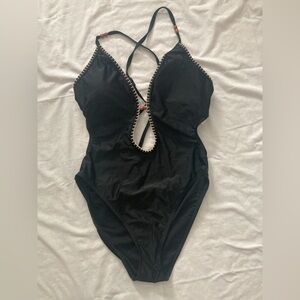 NWT Shade & Shore Plunge High Leg One Piece Swimsuit Size Large Black