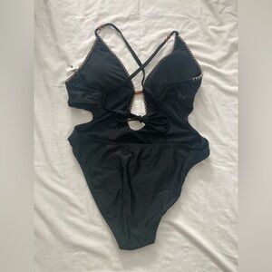 NWT Shade & Shore Women's Plunge Bead Detail Extra High Leg One Piece Swimsuit