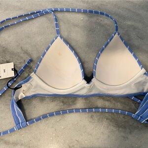 NWT Shade & Shore Size 34A Light Blue White Stripe Thin Strap Ribbed Bikini Top