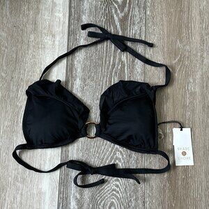 NWT Shade & Shore Swimwear Sz S Black Bikini Top w Ruffle & Metal Ring Cute!