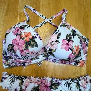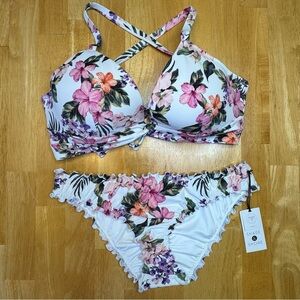 NWT Shade & Shore Tropical Floral Print White and Pink Bikini Set