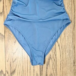 NWT Shade & Shore Women’s Shirred Ribbed Bandeau High Leg Cheeky One Piece Swimsuit