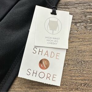 NWT Shade & Shore small 4-6 Black High Waist Cheeky Bikini Bottoms Swim New
