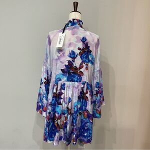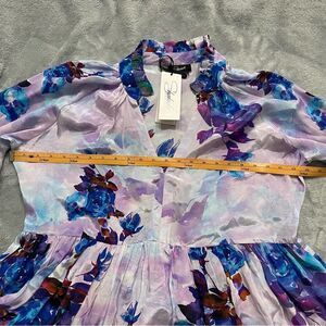 NWT Shahida Parides Floral Print Blouson Sleeve Dress Size XL