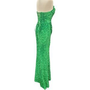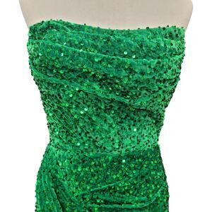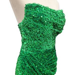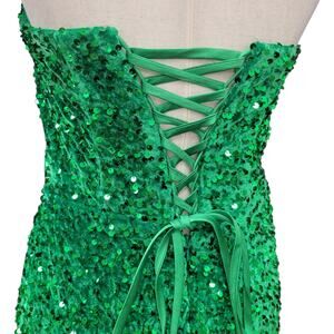 NWT Shamrock Green Strapless Sequin Evening Gown with Corset Back on Velvet