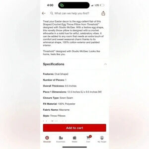 NWT Shaped Crochet Egg Throw Pillow Cream - Threshold designed with Studio McGee