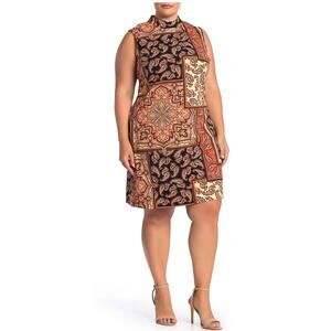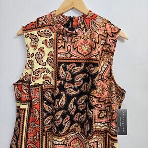 NWT Sharagano Boho Chic Paisley Patchwork Print Maximalist Retro Mini Dress 16W