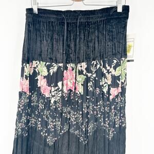 NWT Sharon Anthony Womens Dark Cottagecore Velvet Pull On Floral Maxi Skirt in Black Pink. Size Medium.