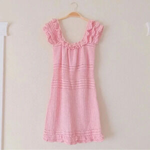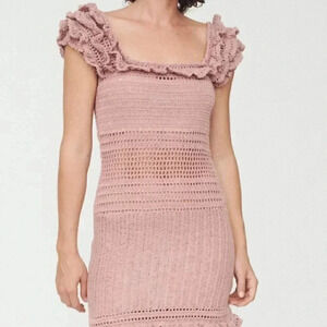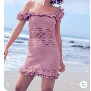 NWT She Made Me Saachi Off-the-shoulder Crochet Pastel Pink Ruffle Dress Size L