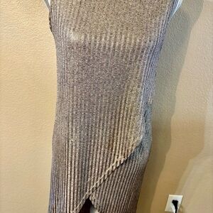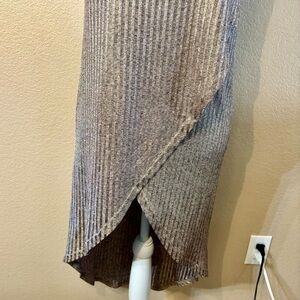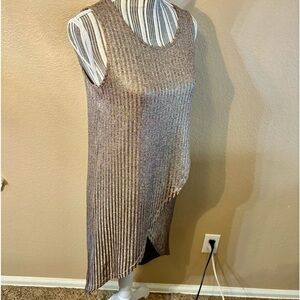 NWT She + Sky Dress Small Gold Shimmer Ribbed Hi-Low Mini Front Midi Back Boho