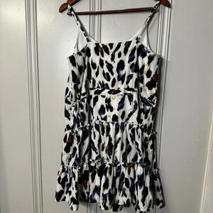 NWT She + Sky Tiered Ruffle Animal Print Spaghetti Strap Sundress Slip Dress M