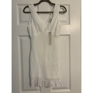 NWT She + Sky White Smocked Sleeveless Dress Small V Neck Lined
