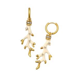 We’re adding the Shea Vintage Gold Huggie Earrings in Ivory Enamel to our vacation packing list ASAP. Inspired by the organic, structural shape of coral, these huggies really pop with their enamel flourishes and crystal details. The charms are also removable, letting you switch up your style for a more minimal look.