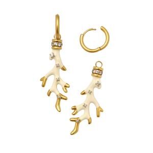 NWT! Shea Convertible Vintage Gold Huggie Earrings in Ivory Enamel