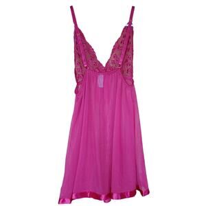 NWT Sheer Fuchsia Chemise Embroidered Lace Women's Medium Coquette Fairy Core