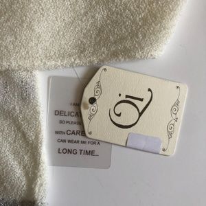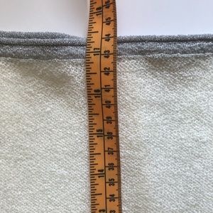 NWT Sheer Qi Knit White & Metallic Silver Trimmed Top