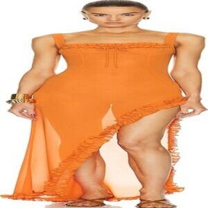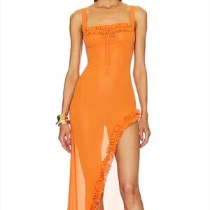 NWT Sheer Ruffled Long Dress HELSA
