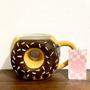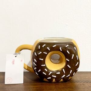 Start your day with a smile with this playful Sheffield Homes figural donut mug, a delightful addition to any kitchen or coffee lover's collection. Designed to mimic a classic donut with chocolate frosting and light pink sprinkles, this mug will start your day off in a great way without the extra calories! Made from durable ceramic, it's perfect for enjoying hot or cold beverages and is microwave and dishwasher safe.