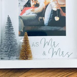 Sheffield Home White wooden 4”x6” Our first Christmas as Mr & Mrs w/ 3D Trees