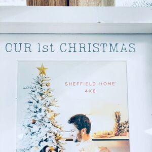 NWT Sheffield Home White wood 4”x6” Our first Christmas as Mr & Mrs w/ 3D Trees