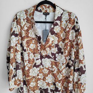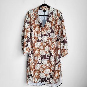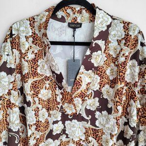 NWT Shegul Golden Animal Print Floral Boho Oversized High Low Emmy Shift Dress