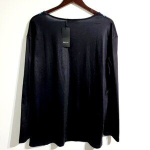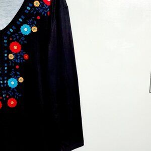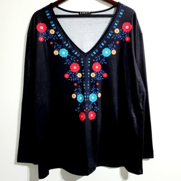 NWT Sheilay XXL Black Floral V-neck Long Sleeve Pullover Top