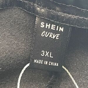 NWT Shein Womens 3XL Black Pants Curve High Waist Faux Leather Straight Wide Leg