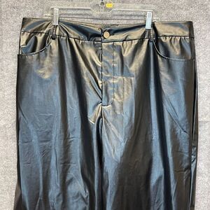 NWT Shein Women's 3XL Black Pants Curve High Waist Faux PU Leather Straight Wide Leg