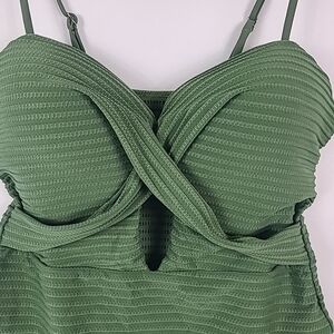 NWT Shein Women's One Piece Swimsuit Size Large Green Ribbed Twist Front