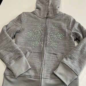 🎃NWT Sherpa Fully Lined Front Embellished Zipper Hoodie, Size M (10/12)