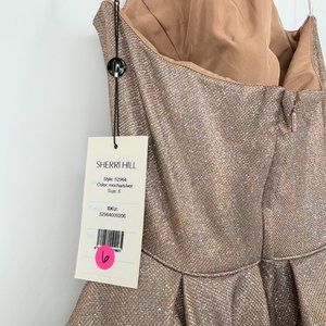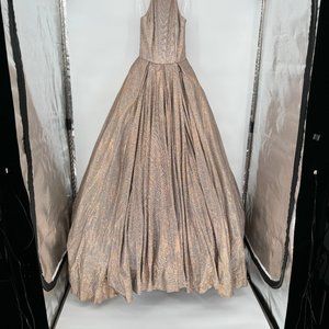 NWT Sherri Hill Glitter Ball Gown Size 6 High Cut Halter Mocha Silver 52964 Prom