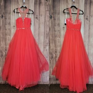 NWT Sherri Hill Rhinestone Halter Gown, Style # 50143 in Coral, Sz 6